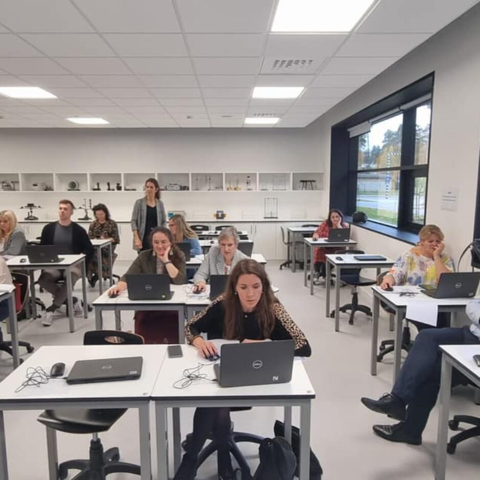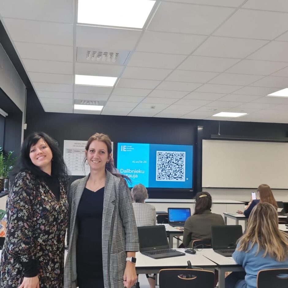 Angļu valodas skolotāja Gita Brodzinska vadīja darbnīcu par platformu “Bookwidgets”, un latviešu valodas, literatūras un teātra mākslas skolotāja Elza Seile – par stundas ierosināšanas daļu.