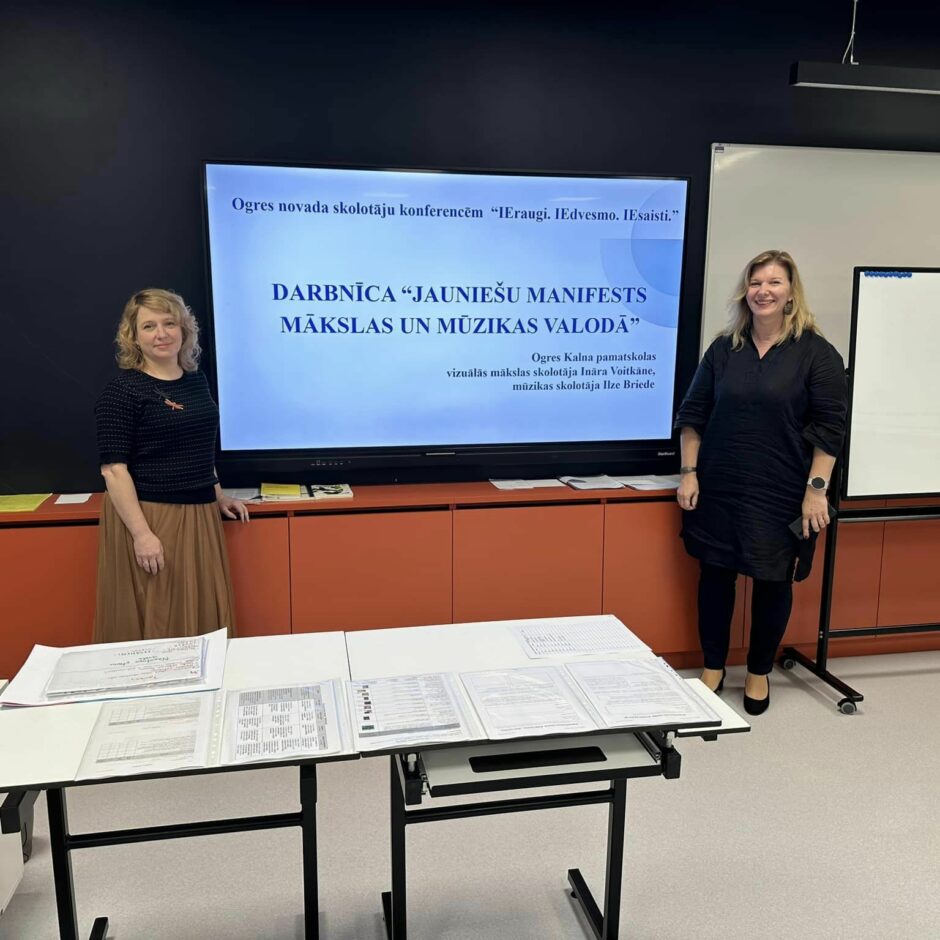 Vizuālās mākslas skolotāja Ināra Voitkāne kopā ar mūzikas skolotāju Ilzi Briedi vadīja darbnīcu “Jauniešu manifests mākslas un mūzikas valodā”, kurā stāstīja, kā attīstīt skolēnu radošās spējas, izmantojot mākslu un mūziku.